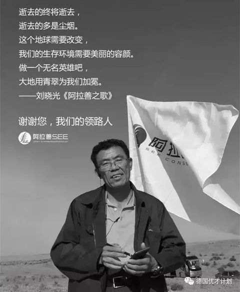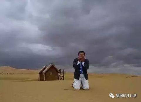 48岁时,他到内蒙古阿拉善沙漠参加会议,而当看到成千上万吨沙土,吹向中国北方时,他不禁扑通跪下,仰天长叹:人类在创造财富的同时也正在毁灭自身!