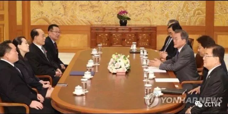 韩国总统文在寅10日上午在青瓦台接见了正在韩国访问的朝鲜冬奥高官团一行,高官团一行当天上午11时许抵达青瓦台。