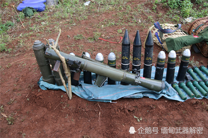 果敢同盟军缴获的缅军卡尔·古斯塔夫M2式火箭筒及弹药