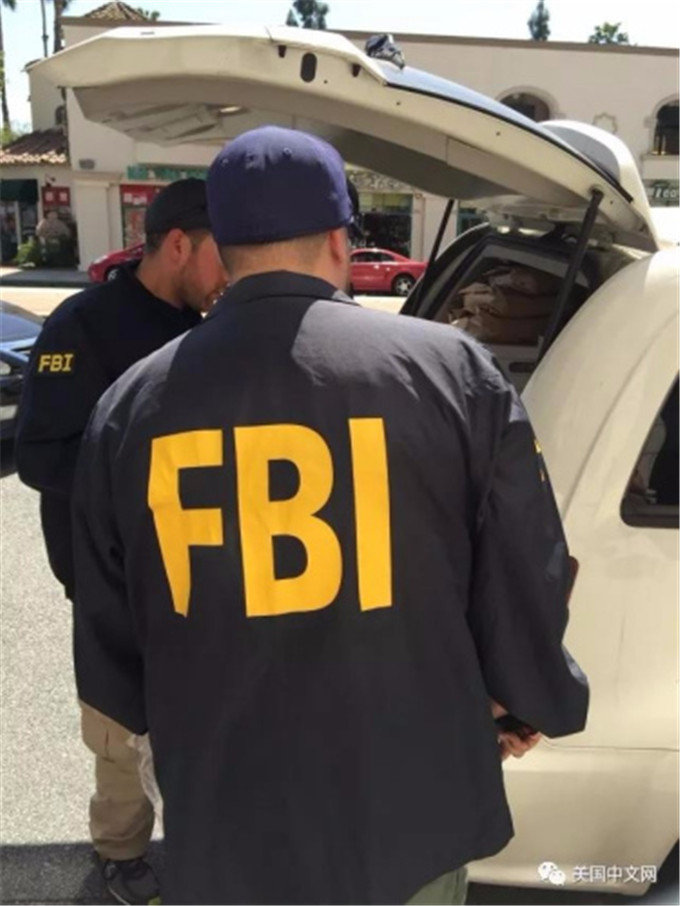 资料图,美国FBI突击涉嫌投资移民诈骗的美国圣盖博市律师事务所,图为FBI检查个人物资(美国中文网)