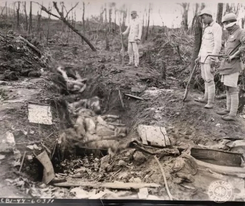 慰安妇遭屠杀后尸体被丢弃,中国军人前来掩埋。像资料截图