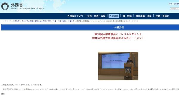 日本外务省官网27日刊登的堀井学在日内瓦联合国人权理事会的演讲全文 环球网 图