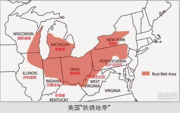 随后,报道将中国此番取得胜利的污染治理与几十年前的美国进行了对比,尤其是铁锈地带。(“铁锈地带”最初指的是美国东北部-五大湖附近传统工业衰退的地区。)