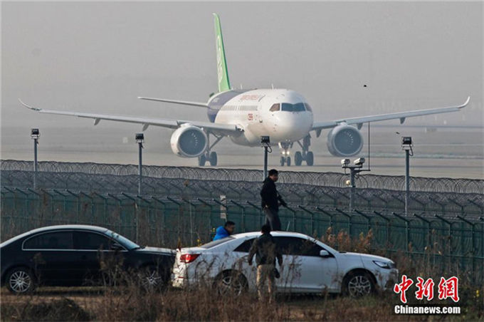 飞机于上午7时34分从上海浦东国际机场第四跑道起飞,9时35分安全着陆,试飞历时2小时1分钟。 殷立勤 摄