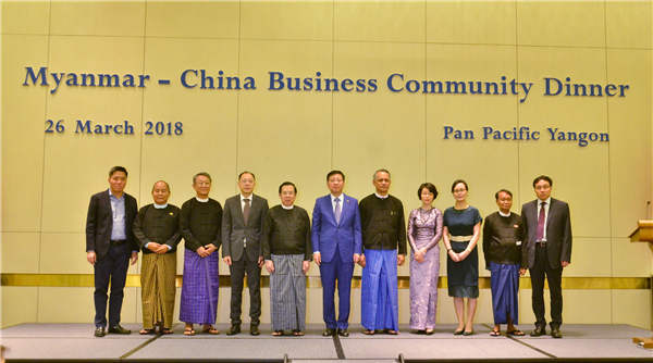 3月26日,为进一步促进中缅企业界交流合作,中国驻缅甸大使馆和缅甸中国企业商会在仰光联合举办中缅企业界联谊晚宴,中国驻缅甸大使洪亮、缅甸投资委员会秘书长吴昂乃乌、缅甸工商联合会主席吴佐温敏、中国驻缅甸大使馆公使衔参赞李小艳、经商参赞谢国祥、缅甸中国企业商会会长刘颖以及中缅商界、智库、媒体代表200余人出席晚宴。与会嘉宾在晚宴及餐前酒会上进行了充分沟通交流,均表示愿积极参与中缅共建“一带一路”和中缅经济走廊并做出自己应有贡献,一致表示希望尽快建立两国商界交流合作开放性新平台——缅中商会。