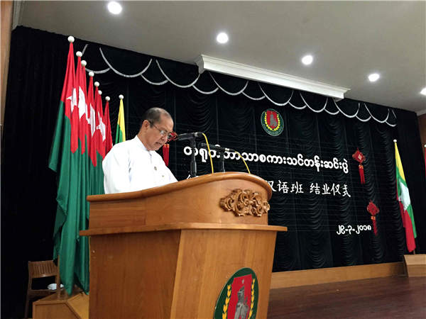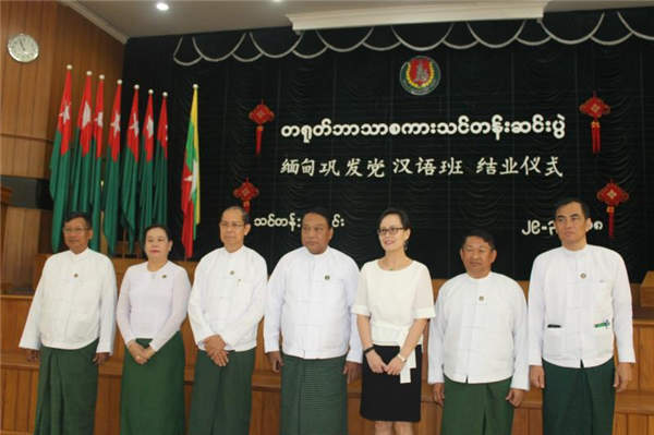 李小艳公参祝贺学员顺利完成培训课程结业,表示语言学习对于了解一个国家和历史文化十分重要,汉语是联合国指定工作语言,学习汉语可以更好地了解中国历史文化,了解中国,能够在中缅日益密切的合作交往中发挥更加的重要作用。李小艳公参鼓励培训班学员们继续学好汉语,今后成为传播中缅友谊的使者。
