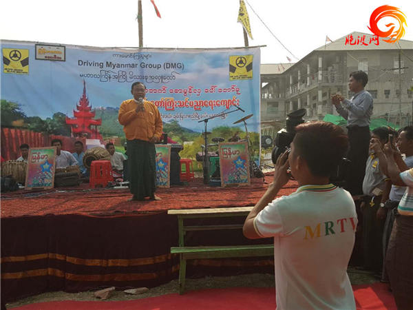 4月1日上午9时,中国驻曼德勒总领事馆王宗颖总领事与曼德勒省议长吴昂觉乌共同参加缅甸汽车驾驶集团(MYANMAR DRIVING GROUP:MDG)在九龙寺庙学校举行的布施捐赠活动。