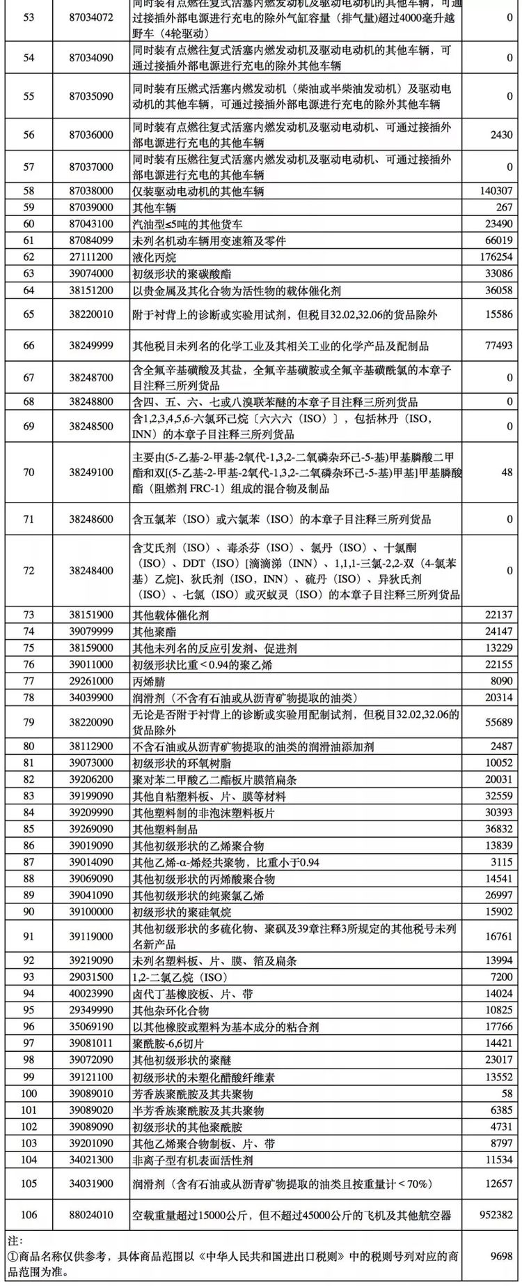 对所列的106项商品,在现行征税方式、适用关税税率基础上加征25%的关税,现行保税、减免税政策不变(本次加征的关税不予减免)。加征关税后有关进口税收计算公式: