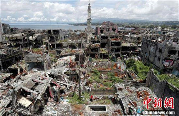当地时间2018年4月19日,菲律宾马拉维成为一片废墟,自2017年5月菲政府打响收复马拉维之战后,当地居民首次获准返回家园。去年5月,菲律宾政府军与恐怖分子阿布沙耶夫和穆特组织在南部棉兰老岛马拉维市发生武装冲突。