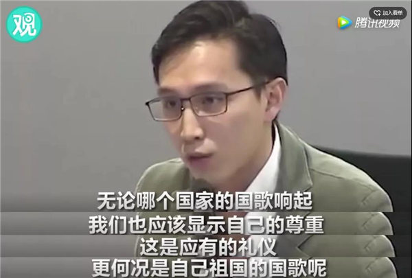 他认为任何国家的国歌响起时都应受到尊重,这是应有的礼仪,更何况是自己祖国的国歌。