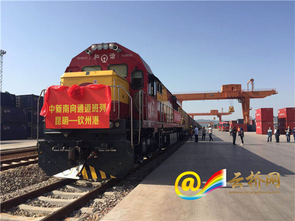 2018年5月18日早上10点,一列满载云南化肥和咖啡豆的50组集装箱班列,从位于云南昆明安宁市的桃花村站始发,它们将通过中国与新加坡互联互通的重要节点钦州港东站转为海运,至新加坡后中转销往东南亚和北美国家。同一天,钦州港东站也向云南对开“中新南向通道班列(钦州港——昆明)”,装运玉米、高粱、大豆、石材等货物入滇,这标志着“中新南向通道班列”首发。