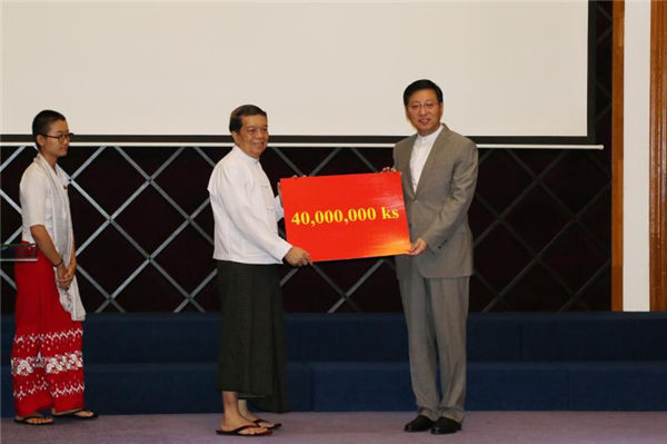 中国大使馆资助缅甸和平委员会救助缅北克钦邦因武装冲突流离失所民众