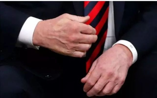 在与法国总统马克龙握手后,特朗普的手背上留下了指印。特朗普9日上午提前离开峰会,乘专机前往新加坡途中,通过社交媒体发文称,他已指示美国代表不支持七国集团峰会联合公报。这凸显了七国集团内部分歧加深。(据新华国际微信公众号报道)