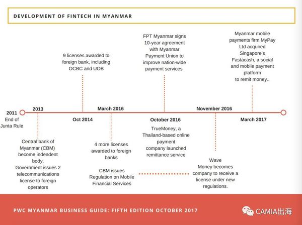 其他值得关注的缅甸金融科技初创公司还包括TrueMoney,一家来自泰国的公司,于2016年10月在缅甸开展业务。TrueMoney专注于跨境支付和汇款服务。