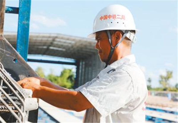 当“澜湄记者团”来到万象郊区的中老铁路施工现场时,立刻就被现场一派热火朝天的景象所感染。一座座高耸结实的桥梁墩台整整齐齐地排列着,由南向北延伸而去。架梁工作正在有条不紊地进行着。“老挝多山区,地形复杂,地势险要,这对于铁轨的设计与建造提出了更高的要求。”中铁二局六标二分部项目经理胡彬告诉本报记者,在中老铁路沿线,62.7%以上的路段都为桥梁和隧道。