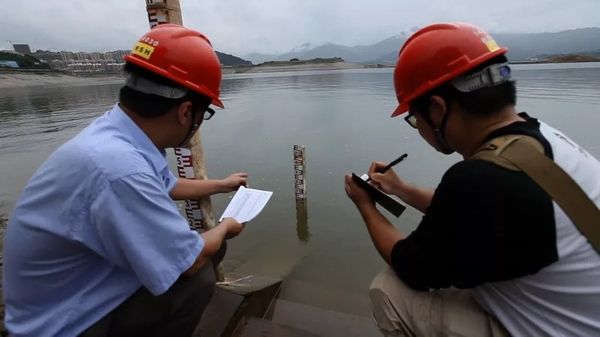 △ 工程师测量三峡大坝坝前水位