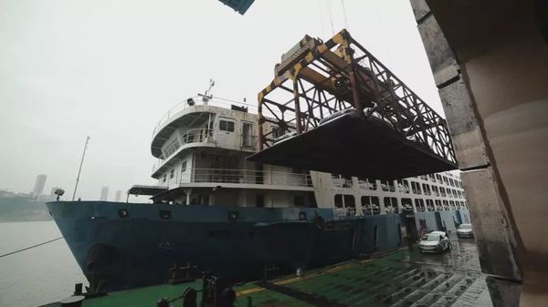 △ 长航江达号正在卸装车辆