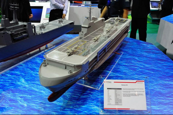 新加坡造船公司展出的两栖攻击舰模型,也采用了一些商业制造标准,以降低价格,吸引更多的第三世界国家购买。