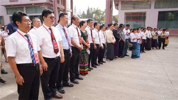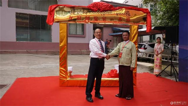州委常委、州委宣传部部长、州委秘书长侯胜,缅甸木姐地区行政长官吴莱梭丹共同为“友谊阅览室(木姐)”揭牌。