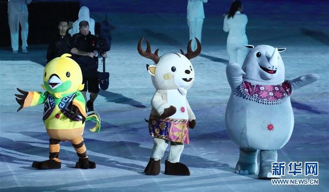 ↑这是赛事吉祥物在闭幕式现场。 新华社记者兰红光摄