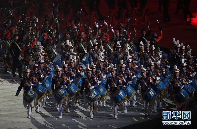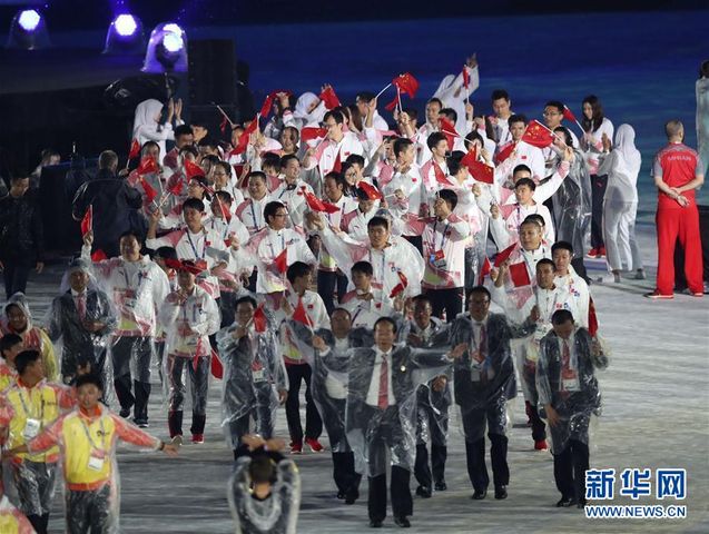 ↑这是中国代表团在闭幕式上入场。 新华社记者兰红光摄
