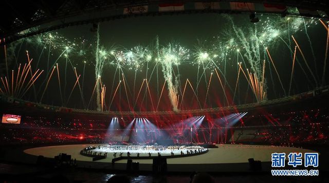 ↑9月2日,第18届亚运会闭幕式在印度尼西亚雅加达举行。 这是闭幕式现场。 新华社记者黄宗治摄