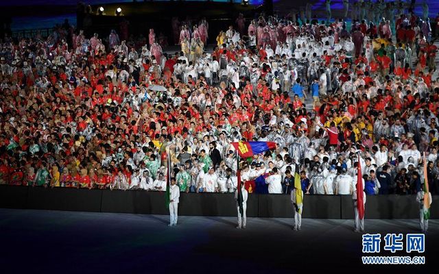 ↑这是闭幕式上升起印度尼西亚国旗。 新华社记者黄宗治摄