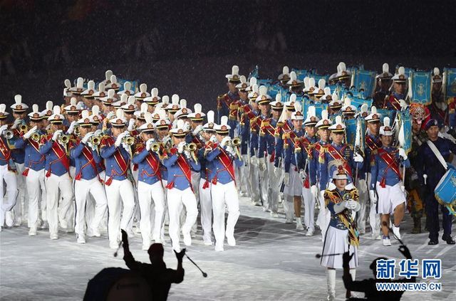 ↑这是中国代表团在闭幕式上入场。 新华社记者丁汀摄