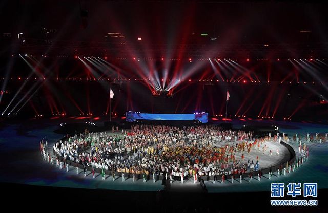 ↑9月2日,第18届亚运会闭幕式在印度尼西亚雅加达举行。 这是闭幕式现场。 新华社记者潘昱龙摄