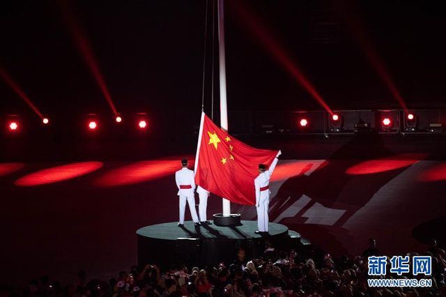 ↑ 这是闭幕式上的升中国国旗仪式。 新华社记者张金加摄