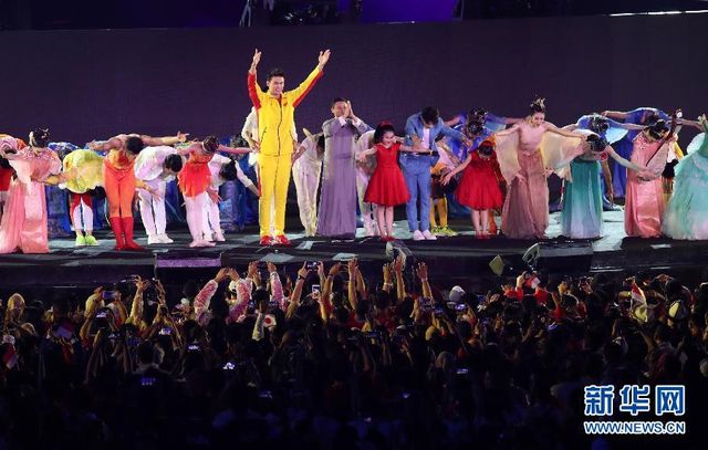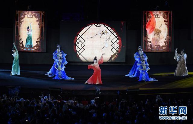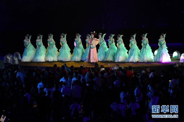 ↑这是闭幕式上的文艺演出。 新华社记者丁汀摄