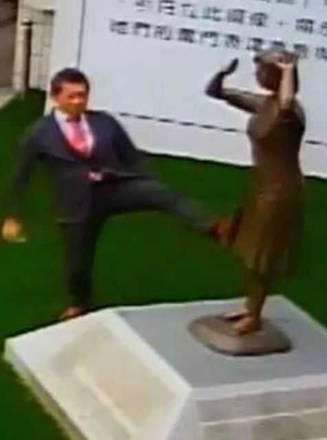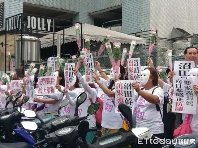 日本右翼团体“慰安妇之真相国民运动组织”日前赴台南国民党党部“讨论”慰安妇问题,其成员藤井实彦被曝光在慰安妇铜像前进行踢踹,引发岛内民意强烈反弹。国民党台南市党部主委谢龙介10日率众扛起“慰安妇铜像”到“台日交流协会”抗议,其余民众更是群情激愤,对着协会大楼狂砸鸡蛋,并痛骂蔡英文、谢长廷和沼田干夫是“X儿子”。警方用网阻挡鸡蛋不成,便两次举牌要求群众解散。现场推推搡搡,一片混乱。