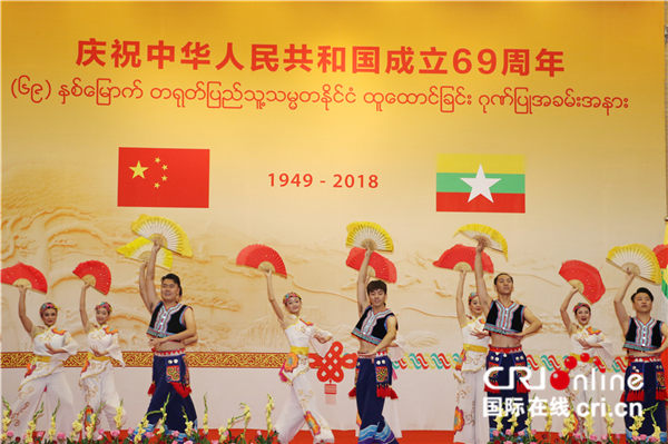 招待会上,来自云南省花灯剧院的演员们进行了精彩的中国传统歌舞和杂技表演,一曲《我爱你中国》激荡起全场的爱国热情,赢得阵阵掌声。此外,招待会现场播放了中缅友好交往记录片,展示两国共建“一带一路”,不断深化全面战略合作伙伴关系的重要事件和发展历程。与会嘉宾纷纷盛赞中国在各领域取得的巨大成就以及对世界和平与发展作出的重要贡献,并祝福中缅关系健康稳定发展,“胞波”友谊万古长青。
