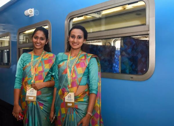 ▲4月8日,在斯里兰卡南部马特勒车站,两名穿着民族服装的女子等待开往贝利亚塔的列车发车。(新华社)
