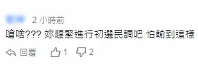 对其言论,有岛内网友进行了批评。有人认为她是在选举中怕输,还有人说,她逻辑乱跳,显得心虚。
