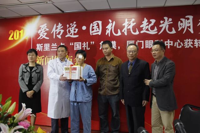 2014年9月,习近平和彭丽媛对斯里兰卡进行国事访问其间,斯总统夫人施兰蒂向彭丽媛又送了10枚角膜作为“国礼”。这10枚全部被厦门眼科中心接收。自那时起,福建每年都能收到20枚来自斯国际眼库的角膜。