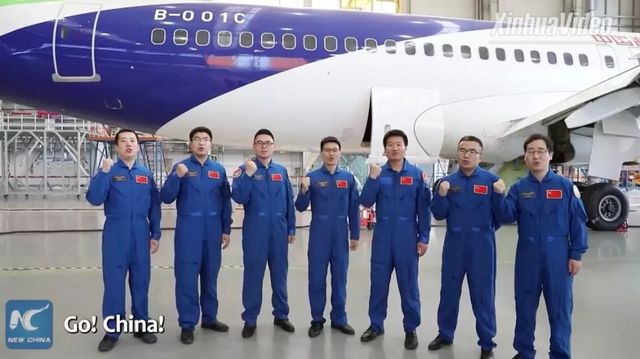 在视频结尾,工程师们大喊着:“大飞机,加油!中国,加油!”