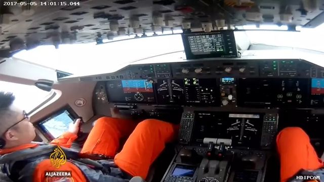 ▲C919首次飞行试验的驾驶舱(半岛电视台报道截图)
