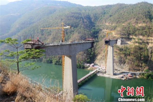 图为大临铁路澜沧江双线大桥正在建设中。 缪超 摄