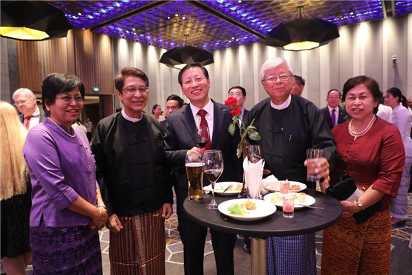 洪亮大使感谢各界朋友对中国大使馆工作的关心和帮助以及对中缅友好合作的关注和支持。洪大使说,三年多来,我们共同见证了缅甸民主转型取得积极进展,民选政府平稳过渡,和平进程稳步前行,民族和解人心所向,经济民生逐步改善,对内改革日益深化,对外开放不断扩大。当然,在前进的道路上,缅甸仍面临很多困难和挑战,需要内部共识和团结,需要外部理解和支持。缅甸发展潜力巨大,前景令人期待。只要缅甸人民有信心、有决心、有恒心,只要缅甸各党各派以国家利益为重,以解决问题为导向坚定不移推进民主转型进程,缅甸一定会成功。作为友好邻邦,中国支持缅甸走符合自身国情的发展道路。一个和平稳定、开放包容、发展繁荣的缅甸是缅甸人民之福,也是本地区各国人民之福。