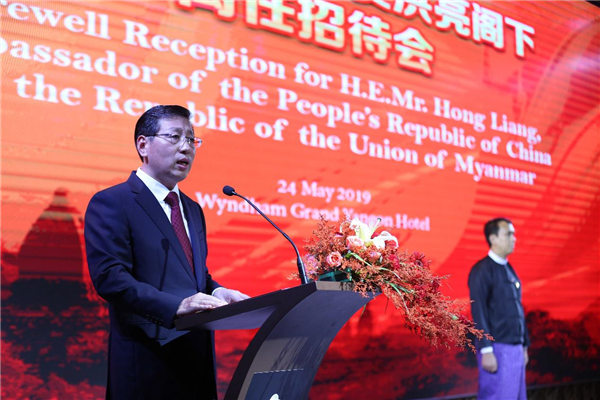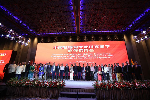 仰光省首席部长漂民登在致辞中高度评价洪大使任内以开拓的精神和饱满的热情推动两国各领域交往与务实合作。漂表示,我们高兴地看到,洪大使出使缅甸三年多来,两国共建“一带一路”和中缅经济走廊从愿景变为现实,中方还在缅甸开展了救灾、扶贫、教育、医疗卫生等一系列民生项目。两国全面战略合作伙伴关系不断走深、走实,更多缅甸人民从两国合作中受益。希望洪大使在新的工作岗位上继续为中缅关系和两国友好事业贡献力量。