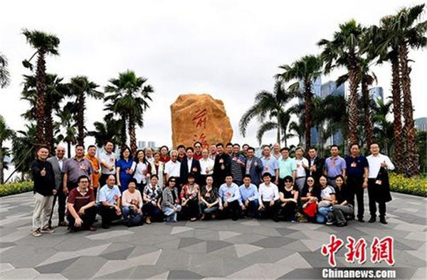 5月31日,来粤参访的第九届世界华侨华人社团联谊大会70位代表在深圳前海石公园合影。 中新社记者 姬东 摄