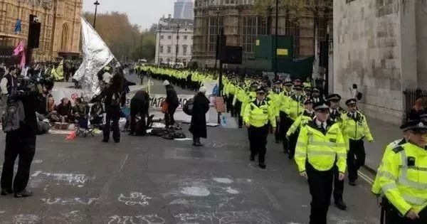 2019年4月,在英国伦敦市区,大量英国民众因为不满政府在环境问题和气候保护上的“低能”,而在伦敦市区发出和平性的示威抗议,抗议活动以歌舞、喊话等相对温柔的形式呈现,示威群众并没有对公共设施造成暴力性破坏。