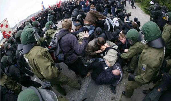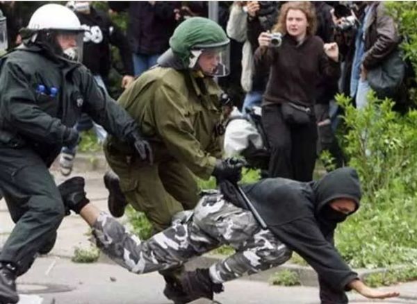 我们再来看看欧盟的另一个领头羊德国:德国在2018同样在法国的影响下,爆发了颜色革命,只不过很快就被镇压了。不过这不算什么,其实早在2008年“反G8峰会”的事件处理过程中,德国就很好地展示了何为“德国标准”了。