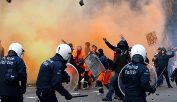 2014年11月6日,欧盟总部所在地比利时爆发自二战以来最为严重的抗议活动,十多万比利时民众在反对派的引导下走上街头抗议,结果,被暴力镇压了。欧盟委员会最青睐的比利时警方催泪弹、橡皮子弹、高压水枪样样上: