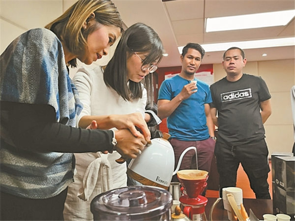 听到爱伲集团已开展咖啡主题的旅游,学员们很感兴趣。他们说,自己的国家也在发展养生旅游、乡村旅游项目,如何发挥好生态自然资源优势,澜湄流域各国可以相互学习。
