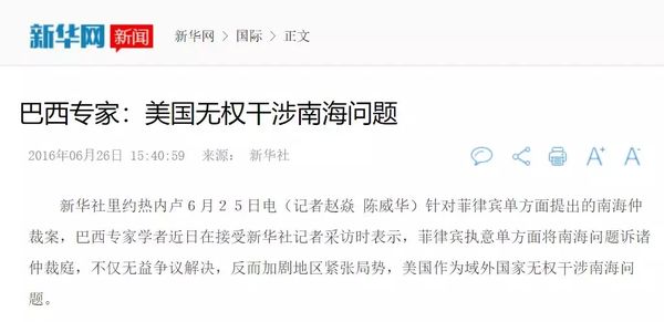 很快,美国又找了个“中立”的瑞典公司发表报告说,“中国在南海的行为违背联合国原则”。