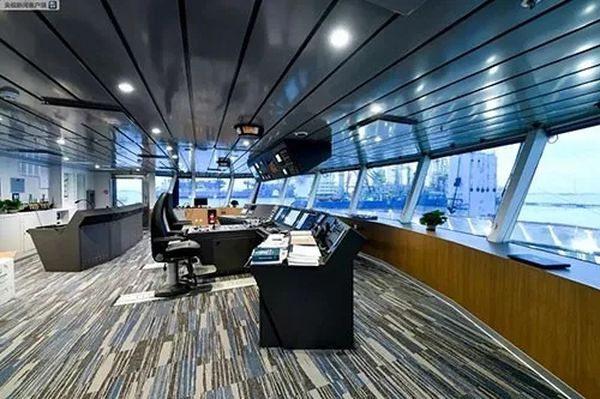 在有着180度观景窗的驾驶室里,记者的第一印象就是科技感满满。智能化的控制系统只需一人即可实现对整个邮轮的操控。