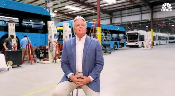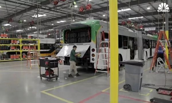 ▲美国的电动公交制造工厂(CNBC报道截图)