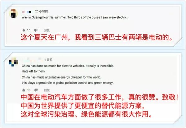 “中国在电动汽车方面做了很多工作,真的很赞。致敬!中国为世界提供了更便宜的替代能源方案,这对全球污染治理、绿色能源都有很大作用。”